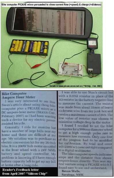 Control de flujo de corriente en el Banco de baterías se ha demostrado posible con un medidor de Amp.hour DIY en torno a un ordenador para bicicleta barato. La idea detrás de esto es actual en amperios se muestra como la velocidad, mientras que muestra los A.h corriente x tiempo como distancia! (Velocidad - distancia - física x tiempo por supuesto). Podómetros también tienen - ejem! -"kilometraje", pero traje sólo acumulado flujo.