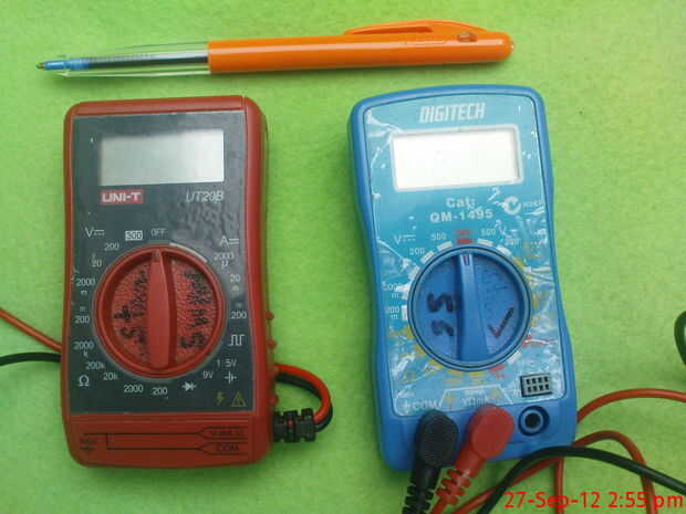 Australia/Nueva Zelanda enchufe Jaycar utilizado para almacenar la versión azul de Digitech QM-1495 y su catálogo de 2012 muestra que la intención de hacerlo otra vez (esta vez con una Digitech naranja QM-1502). Esta DMM Jaycar tiene puntas de prueba extraíbles normales, dibuja sólo un asombrosamente bajo ~ ¼ mA y también ofrece una gama de 10A. Estas 2 características más tardías hacen el tipo preferido para 12 V solar actual de monitoreo.
