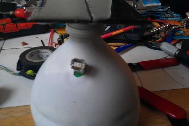 Después de que todo está conectado al interruptor, corte un agujero en la botella para montar el interruptor, montar el interruptor usando pegamento caliente. También he añadido una conexión usb. No voy carga con alimentación usb desde una toma de corriente pero mi cargador solar usb que hice hace un tiempo, el panel solar en mi cargador usb carga una batería de iones de litio y entonces puedo cargar cualquier cosa en cualquier momento del día con esa carga.