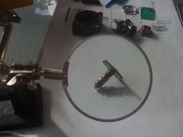 Imanes de unidad difícilmente tienen los polos norte y sur en el mismo lado, así que queremos la bobina colocada por lo que es sólo sobre un extremo del imán HD. Si todo funciona, el dispositivo debe comenzar movimiento inmediatamente. Ahora tenemos que hacer algún ajuste fino. Con la bobina sobre el imán, tome nota del tiempo en la bobina es atraído o rechazado cuando "patea", si es rechazado, el imán debe ser dado vuelta alrededor por lo que es el otro extremo. Hay 2 razones, la máquina va a funcionar mejor, y cuando los imanes se rechazan entre sí son ligeramente debilitado. (y cuando son atraídos, se consolidan)