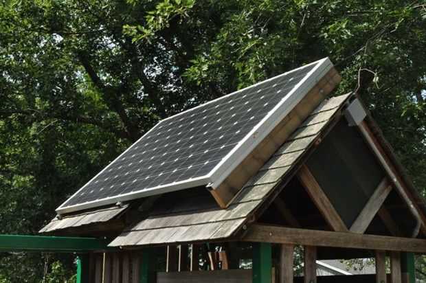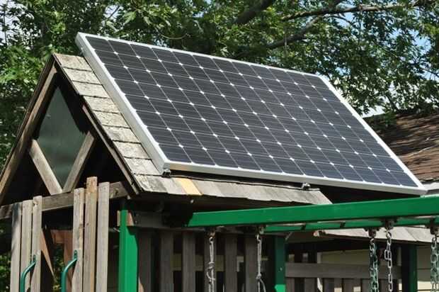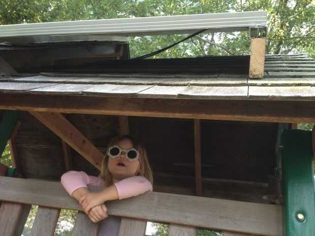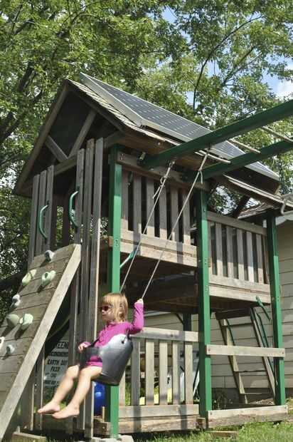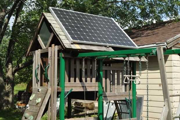 Así nació una idea. Combinan un fuerte de patio y juego con las energías renovables para crear un conjunto Swing Solar y fotovoltaica Playhouse!