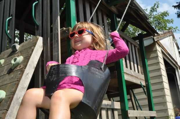 Mientras que mi patio tiene muchos árboles, hay muy pocos que están bien para colgar un columpio de. Colgué mi cubo-swing en la sucursal de uno que tenía, pero estaba lejos de ser ideal. Juego para niños, con un lugar para columpios y un tobogán sería lo ideal, pero que también iría mejor exactamente donde me gustaría montar mi PANEL SOLAR.
