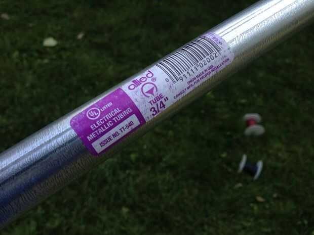 Para ello, me gustaría medir y cortar un conducto de metal de 3/4", aplanar los extremos, perforar, pintar y luego Monte el conducto a la estructura.