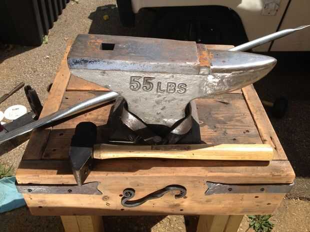 Aplanó luego ambos extremos de la tubería. Primero medí cuánto de cada extremo tendría que ser plana (donde sería directamente contra la estructura). Entonces martilló el tubo mi yunque con un trineo de 3 lb. (Para ver el Instructable sobre como hice el soporte del yunque, haga clic en el enlace.)