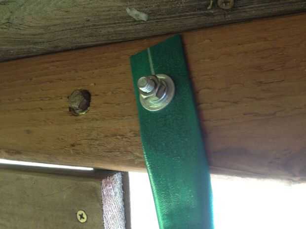 Finalmente, había montado el Cruz-apoyar a la estructura mediante un perno en la parte inferior en el poste de 4 x 4, y perno de un carruaje en la madera más fina en la parte superior.