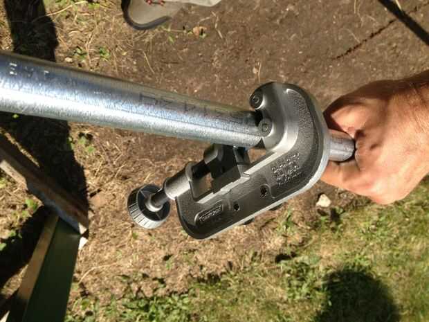 Para empezar, mide desde cerca de la base a cerca de la escalera, señaló la medida y cortar ese conducto. Otra vez, un cortador de la tubería regular trabajó bien hacer un corte limpio en el tubo.