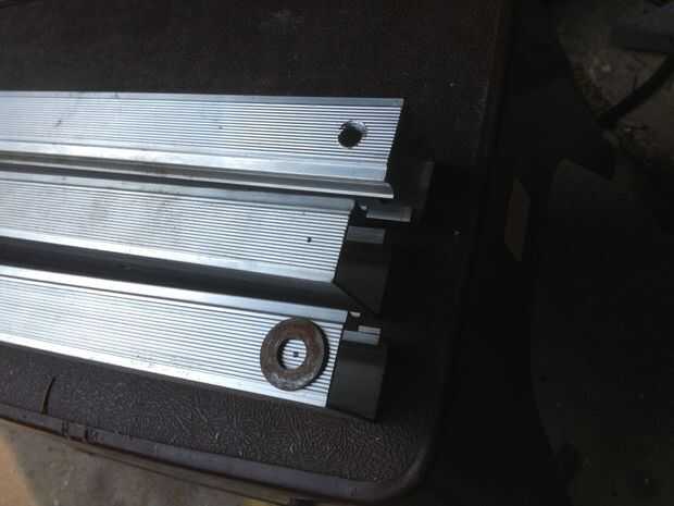 En la parte posterior del panel PV son un número de agujeros, espaciadas para su uso como puntos de enganche. Me decidí por tres piezas de aluminio c-canal de conexión en la parte posterior del panel. El espacio era simplemente uno en el centro y los otros dos en cada extremo.