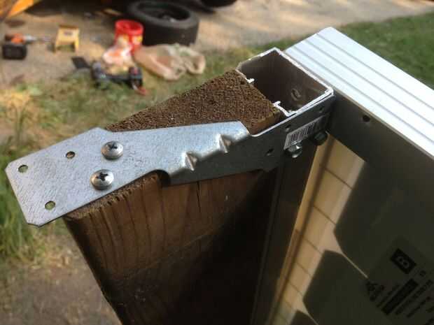 Había alineado el canal de c en el marco del panel PV y marcados los orificios existentes del marco. Luego perforar orificios 1/4" en el canal y fijarse con tornillos de 1/4"-20, arandelas, arandela y tuerca.