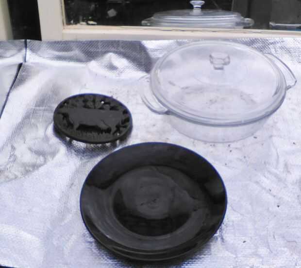 Ponga la tapa en lugar el plato de casserold en el pote de soporte en el área focal de tus espejos o reflectores en una base reflexiva