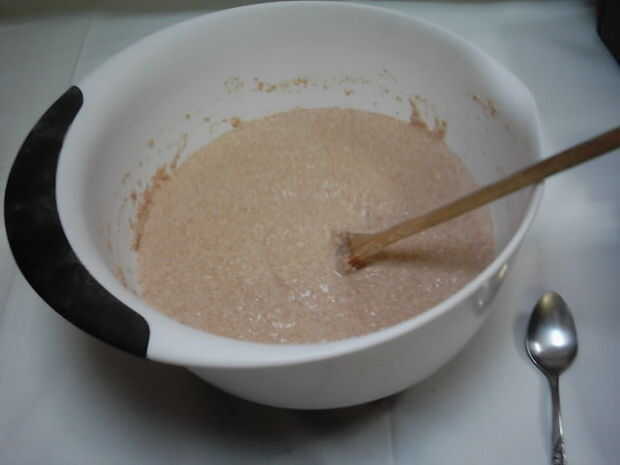 creo que fresco moliendo el grano asegura que los aceites de trigo integral no tienen oportunidad de enranciarse.  Empresas de venden de harina de trigo blanca una de las razones es que los aceites y golosinas se han quitado porque tienden a perder rápidamente.  Con tierra fresca que no sucede y es un pan más saludable thnk.   4 tazas de la harina, yo agregue una cucharada de sal, una cucharada de azúcar (aunque realmente no lo necesita, pero ayuda a la levadura) y una cucharadita redondeada de la levadura.  Se puede utilizar levadura de pan regular, o he estado últimamente usando levadura de destiladores que obtengo de nuestra tienda local de suministro de vino por unos 10 dólares la libra.  Luego agregar 4 tazas de agua tibia y revuelva bien.  Cuando está soleado puedo poner el agua en el horno solar durante unos minutos calentar un poco.  No desea el agua demasiado caliente o matará la levadura.  Lo suficiente como para que su dedo meñique se siente un poco caliente cuando se pone en el agua.  Puede usar agua fría, pero tarda más en subir.