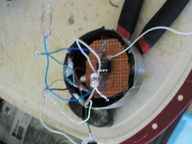 a continuación poner un pequeño agujero en medio de su plástico y ejecutar a través de lo led