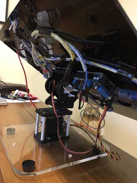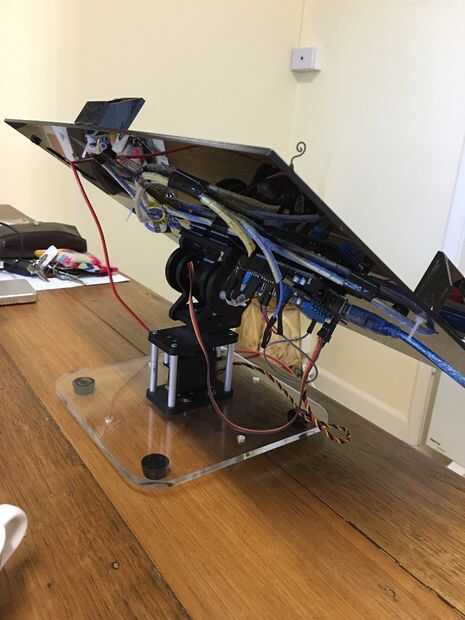 He utilizado un Arduino Uno y un escudo del motor para conducir dos servomotores izquierda y derecha, arriba y abajo. Adafruit vende un gran escudo del motor para este fin y ServoCity stocks el mecanismo Pan & Tilt que usé. Además, usé un panel solar de 17W y kit de la batería de Voltaic que viene con los adaptadores necesarios para conectar una batería que puede cargar un iPhone alrededor siete veces o un Macbook Pro una vez!