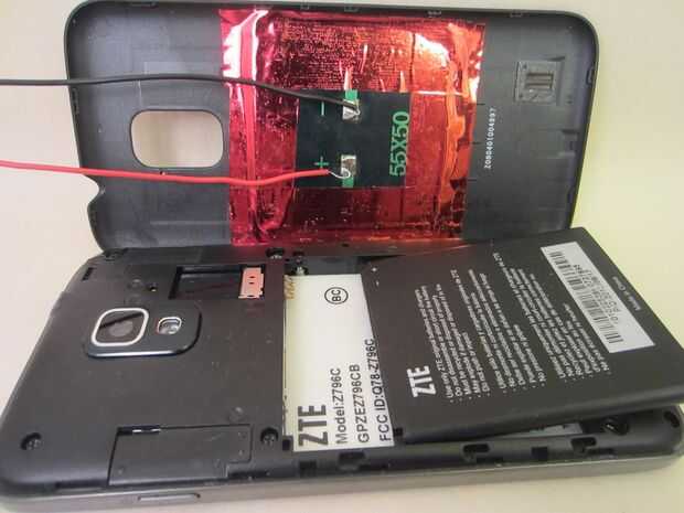 Pase los cables con sus terminales de la batería, asegúrese de conectar el cable rojo al contacto positivo y el cable negro con el contacto negativo. Usted puede soldar los cables si quieres, pero todo que hizo fue colocar contra los contactos y presione la batería en su lugar, así, fijándolos en la posición correcta. Clip de la parte posterior del teléfono en su lugar. Esto puede tardar un poco persuasión teniendo en cuenta que ahora es un poco más abultado de lo que era al principio del proyecto. Disfrute de su teléfono Solar-Assisted.
