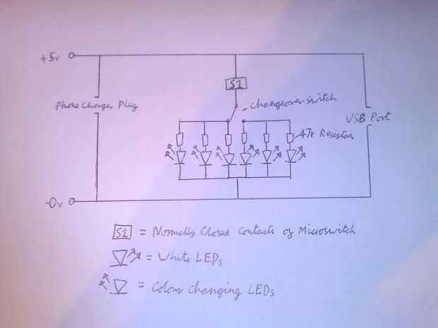NOTA: La razón que he soldado a contactos normalmente cerrados del microinterruptor es que cuando el libro se cierra, se presiona la palanca hacia abajo, desactivar el circuito. Esto significa que el LED encienda automáticamente al abrir el libro. Puede reemplazar con un conmutador normal si no desea que se encienda automáticamente. El conmutador deslizante le permite elegir que los LEDs: antorcha o disco modo :)