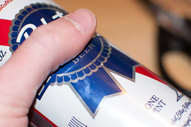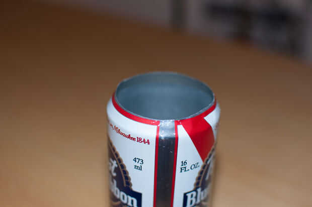 Completamente Lave el interior de la lata y dejarla secar. Una vez seco, tomar la aguja y pinchar un agujero a mitad de la parte plana de la can. El agujero debe ser aproximadamente de 0,2 mm a 0,3 mm de diámetro. Para hacer la cámara más fácil de la carga, coloque un pedazo pequeño de cinta aislante sobre el agujero en el interior de la can.