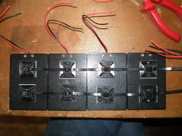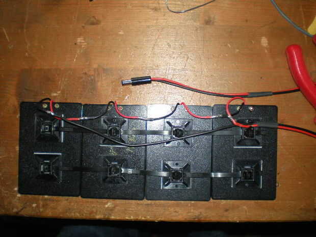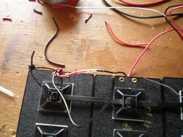 -Conectar los paneles en serie (rojo con negro, etc) y de la soldadura. Aislar con tubería del encogimiento del calor.