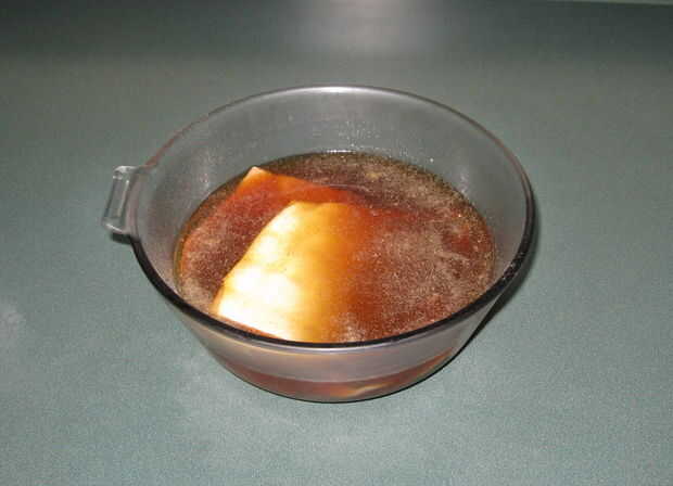 Coloque los filetes en un recipiente grande, espolvorear con ajo en polvo y pimienta negra. Añadir una cucharada de saborizante de humo de nogal y una onza de salsa de soja y rellenar con dos tazas de agua a una taza de medir. Revuelva la mezcla y añadir a los filetes de pescado. Asegurarse de que la marinada cubra los filetes y poner en la nevera a reposar veinte minutos mientras prepara el plato. Uso de ajo en polvo ajo no sal o pueden secar los filetes.