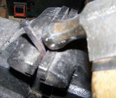 Uñas de hormigón son muy duros hasta que se suavicen con el calor. Coloque tres clavos en un ladrillo. Calienta dos de ellos poco más allá a mitad de camino un poco más a la punta hasta un rojo embotado. Calor una tercera clavar igual unos 3/4 de pulgada de la cabeza. El tercer clavo será el pesebre. Debe ser ablandado por lo que se puede cortar con una sierra para metales. Usé una antorcha de gas MAPP para calentar los clavos. Permite que se enfríen para que no te quemes los dedos.
