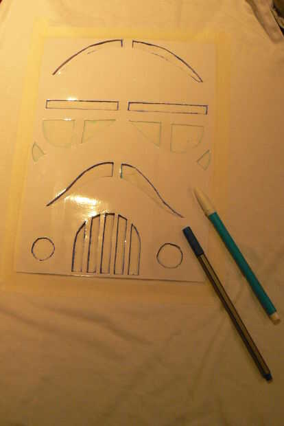 Con cinta la plantilla de corte laminada en su camiseta y trazar las áreas de recorte con la pluma de un sastre.