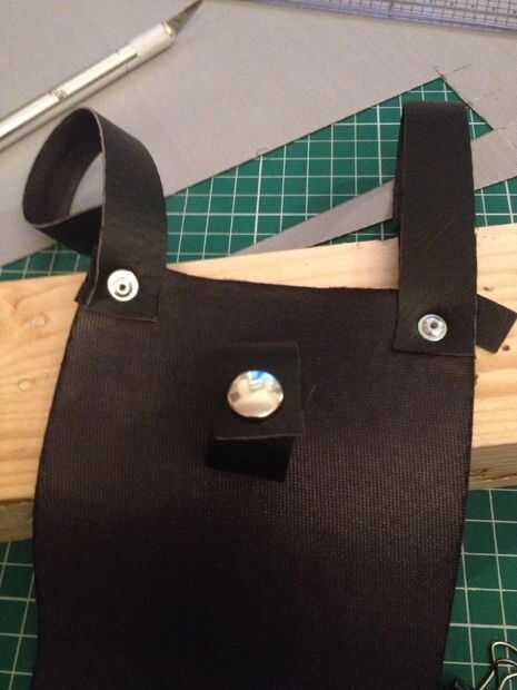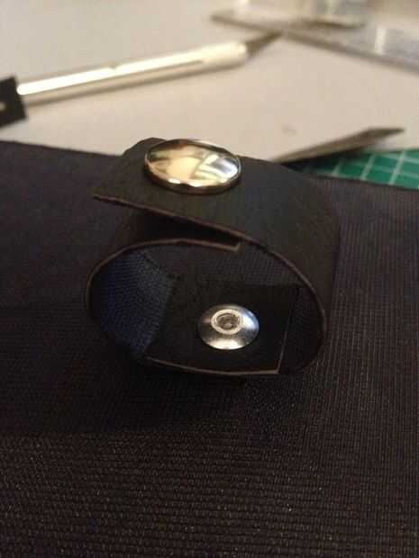 Puse los broches en cada extremo de la tira de longitud corta y había remachado a la parte principal a través del agujero central.