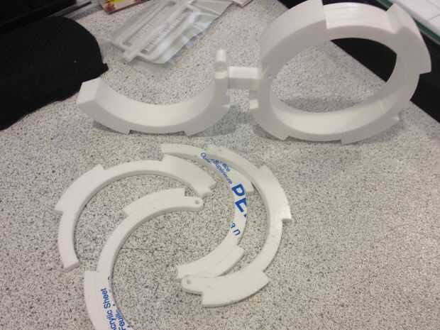 tenía cuatro capas para crear las carpetas. las dos capas medias tenían el poste con un agujero de la bisagra, también la barra en el centro para unir las dos partes de los puños.