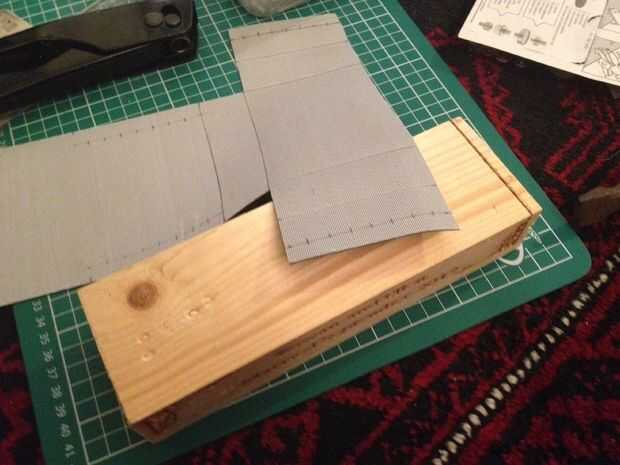 Corte tres piezas más. dos 11 pulgadas largas tiras de una pulgada de espesor y una tercera de una pulgada de espesor por cuatro y medio pulgadas.