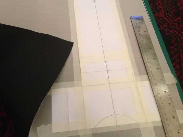 marca abajo de los lados cortos de la T de los lugares donde usted se ser costura en la parte posterior, También Perfore orificios donde la espalda se va cosida a los brazos cortos del T. esto hará que sea más fácil cuando la costura como usted no tiene que usar fuerza para empujar la aguja a través de los materiales.