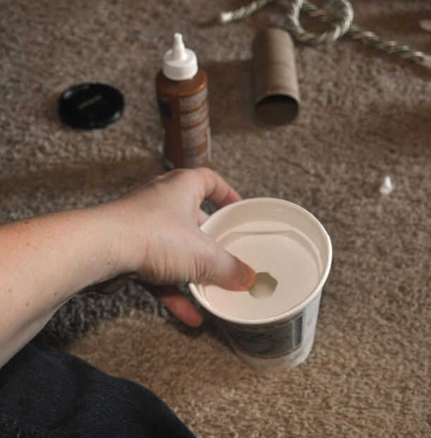 3. Coloque la tapa en una taza de papel y apartar para que el pegamento puede establecer y seco.