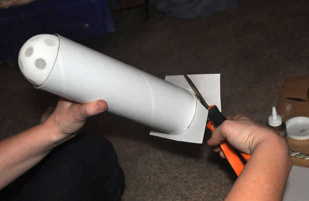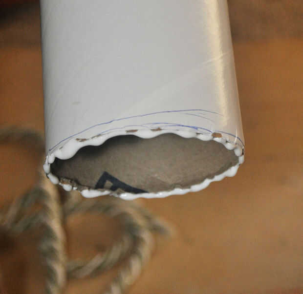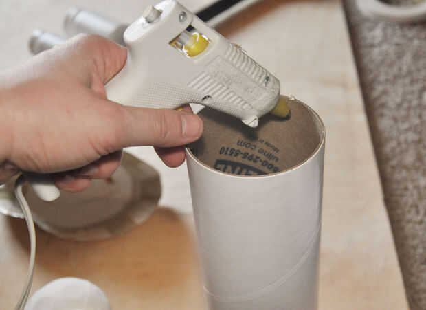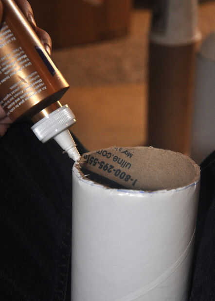 - Si usted no tiene un tercer tubo como hice y tuve que poner 2 cilindros para formar un tubo largo. Usé blanco pegamento para pegamento del borde del 1 cilindro a otro visto en el cuadro #14.