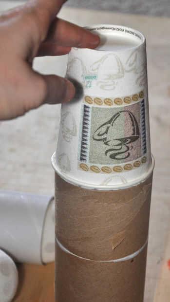 - Borde de la cola blanca de la taza de papel y y colocar el borde del tubo 3 visto en cuadro #15.