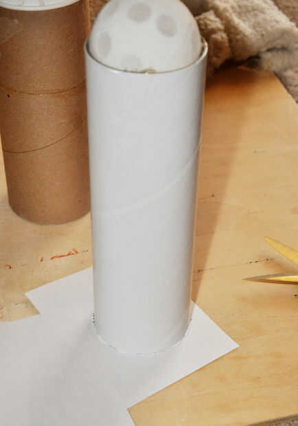 - Una vez que el pegamento ha fijado, cortar el papel sobrante alrededor del borde del tubo de imagen #12.