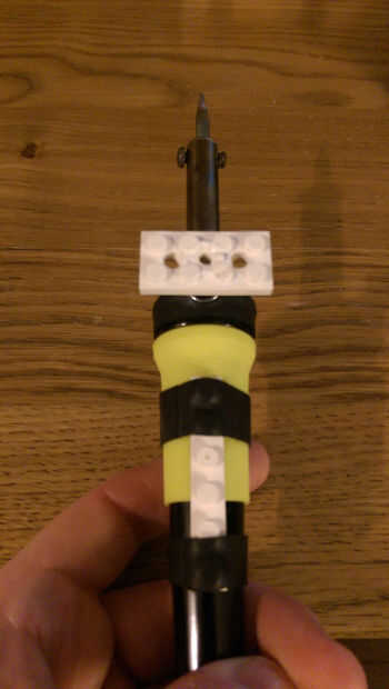 Una vez completado, usted debe han adaptado el soldador con una placa base y un disparador de un resorte. El resorte en el gatillo se utiliza posteriormente para aplicar el cable al calor con sólo una pulsación del pulgar.