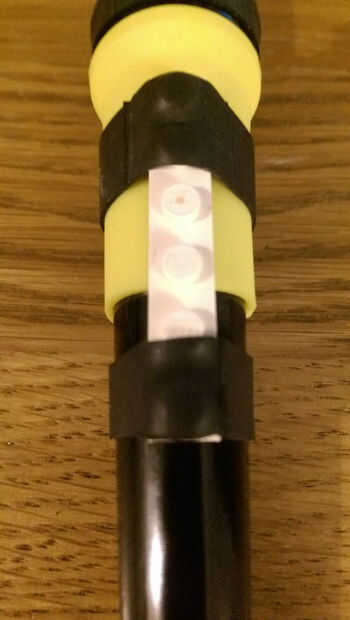 Primero, quería un montaje seguro para el dispositivo. Cortada x3 secciones de un estándar de cámara de bicicleta y tirado encima del soldador, fijándolos en tres lugares. (bandas negras que se muestra en fotos)