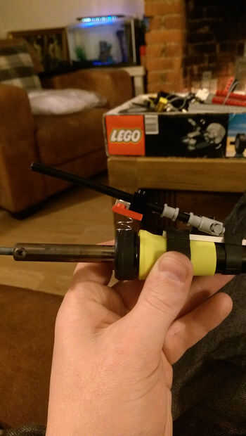 En esta etapa I rápidamente a través a un modelo básico para ver si el disparador y la acción fue como se esperaba. Puede que no necesite hacerlo, pero pensé que valía la pena compartir ya que muestra cómo la acción del gatillo funciona sin el marco principal construido alrededor de él. Se puede ver en la vista lateral que la primavera está en su lugar debajo del gatillo.