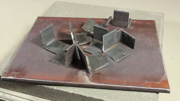 Una de las piezas de metal corto en pedacitos más pequeños, por lo que tendría más piezas con que podría utilizar para la práctica de la soldadura.