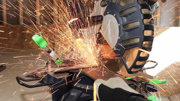 Recogió algunos pedazos de metal de soldadura empresa por el camino y cambiado las cuchillas de mi sierra de inglete con una rueda de corte de metal de 12".