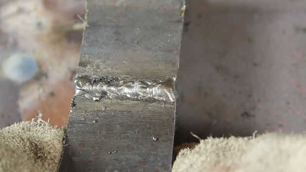 Con una (6013) 1/16" celulosa revestida varilla compatible con AC traté de hacer mi primer soldaduras en dos de las piezas que corte antes.