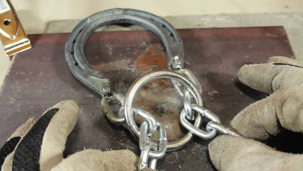 También intenté hacer el clásico rompecabezas de herradura con 2 herraduras, algunas longitudes de cadena y un anillo de acero de 2".