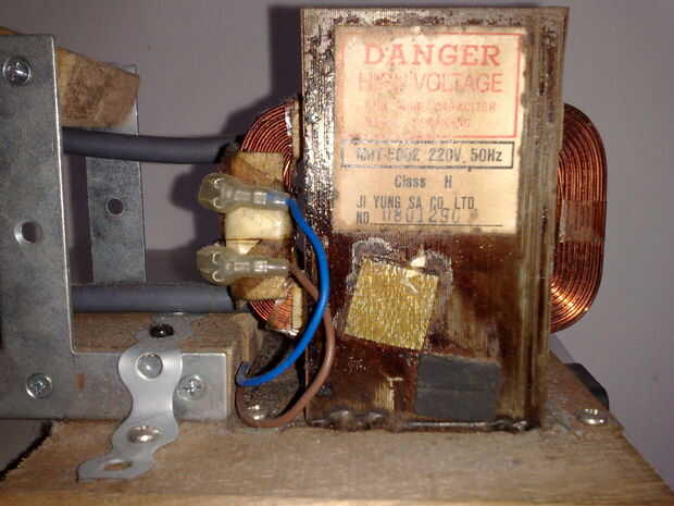 5. Retire el transformador (como se ve en la foto) y dejar a un lado, usted también puede desear que el magnetrón contiene algunos imanes muy fuertes, pero es el infierno para desarmar (para otra vez)