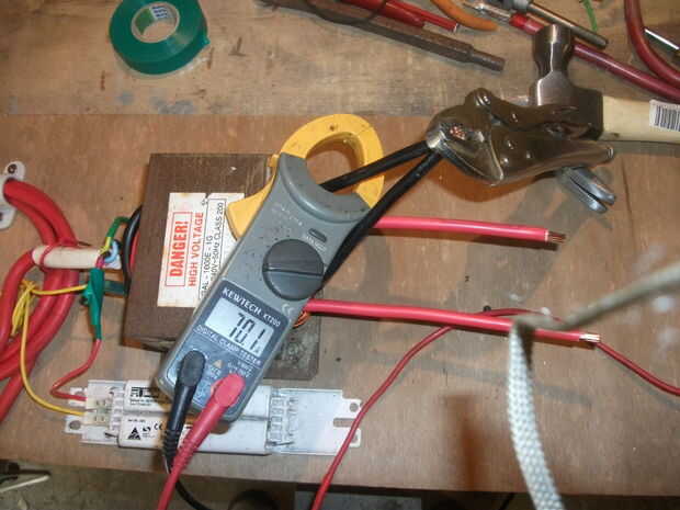 Antes de pulsar ese botón otra vez voy a conectar el amperímetro y ver lo que está tirando de la primaria, * ojos abultamiento * 31.59Amps!