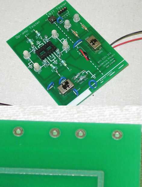 Coloque el componente con sus conductores a través de los orificios adecuados (decidir cuáles son adecuadas es más allá del alcance de esta instrucción), con el cuerpo del componente en el lado sin impresión en metal y los extremos largos de los cables en el mismo lado que la impresión metálica.  Si el componente no queda en su el propios, curva las puntas un poco contra los lados de los orificios están en.