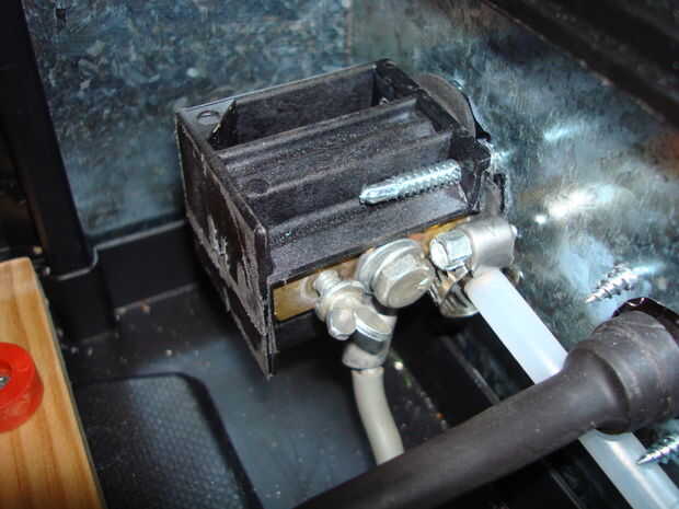 El otro extremo de la manguera conecta en el pezón que se atornilla directamente en el bloque de conector de Lincoln. He utilizado pequeñas abrazaderas para todo apriete. El PSI en la conexión no es alta.