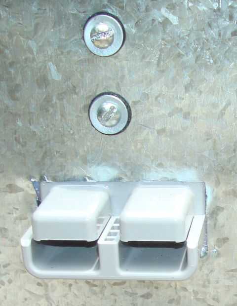 Luego utilicé un soporte en L para asegurar la parte superior del conector en la pared del lado del metal. Utilicé las arandelas de Junta de goma para montar el soporte en L y entonces utiliza pegamento caliente para sellar donde el enchufe entra en contacto con el metal de corte. La caja de herramientas no estancas, pero quería que resisten agua donde era más probable que corroe.