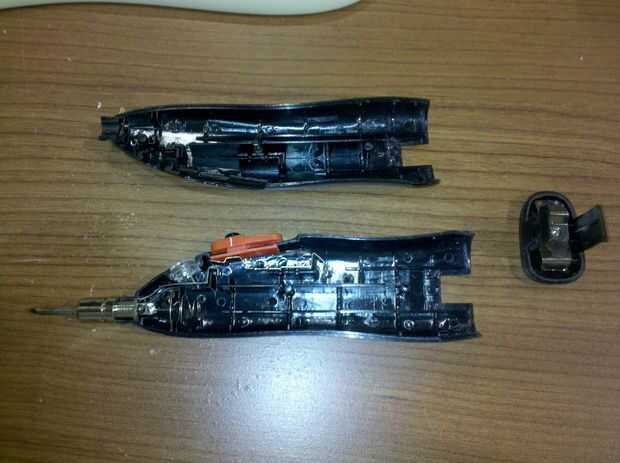 Necesitarás:1. USB cargador de coche (yo tengo la mía por $4.99).2. linterna (yo tengo la mía gratis)3. 2 abrazaderas.4. algunos cables.5. soldador.6. un taladro.Paso 1: Desmontar un cargador y linterna. 1. Retire la batería de la linterna.2. Desenro