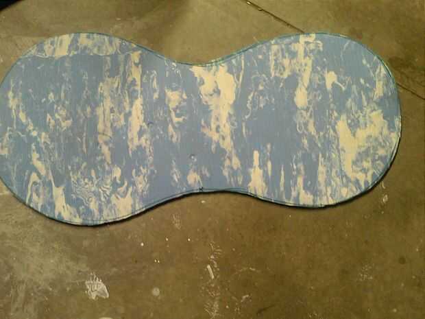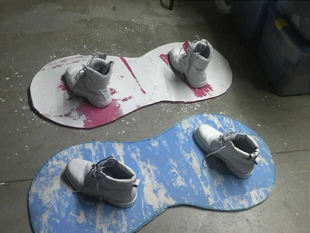 YOGA MAT!!! Yo tuve uno, como lo hizo mi compañero tendido en el garaje. Eran súper fáciles de cortar (buen uso tijeras) y fáciles atar a nuestras botas con