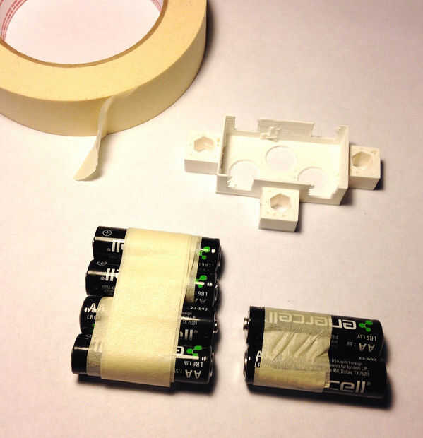 Tomar alrededor de 6 baterías de AA utilizada y 2 pilas para hacer 3 sets de cinta. Ahora la cinta dos juegos juntos para formar una base de batería 4 y luego agregar otro situado en la parte superior.