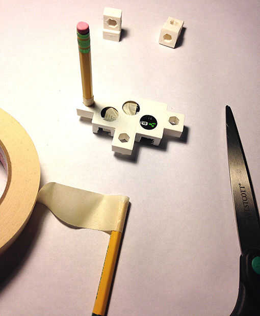 El lápiz de la cinta, para que se ajuste cómodamente en el soporte de la base (hexágono donde los ajustes de lápiz en es ligeramente más grande para dar cabida a todo tipo de lápiz de la HB), se podrá la cinta 2 - 4 veces alrededor del lápiz, basado en el grueso de sus lápices
