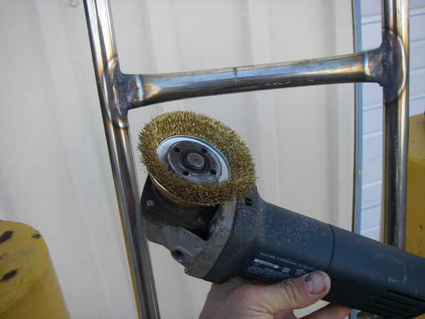 Inoxidable se oxida si no se tratan. Se puede utilizar un cepillo de acero o una vieja muela que se ha utilizado en acero regular. Rozará rustable hierro sobre la superficie. Obtener una nueva muela y solo utilizarlo para acero inoxidable. Después de la soldadura necesita "apaciguar" el inoxidable. Cristales de hierro rustable salen a la superficie de la soldadura. Es necesario limpiar la soldadura con algo - no lana de acero, cepillo de acero no. Estoy usando un cepillo de bronce. Utilizar jugo de limón para grabar todo el hierro de la superficie. El cromo y el níquel que no aherrumbran. Salvo que usted mezcle los grados de acero inoxidable, o un problema eléctrico, o...