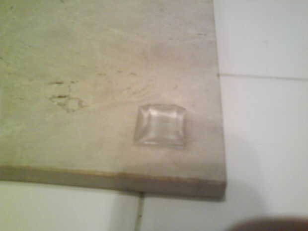 Voltear la pieza y aplicar los pies. Yo lo hice les sobre en pulgadas de cada borde en las esquinas.