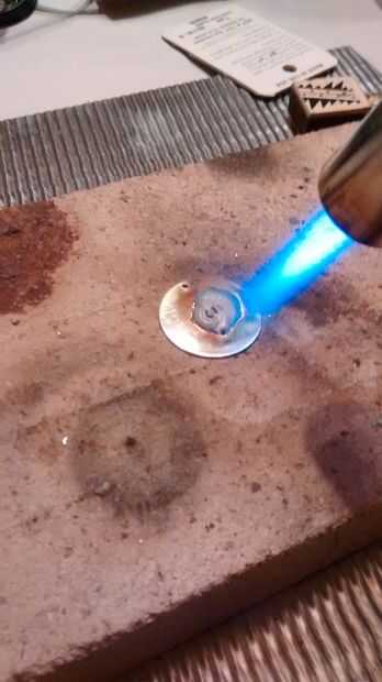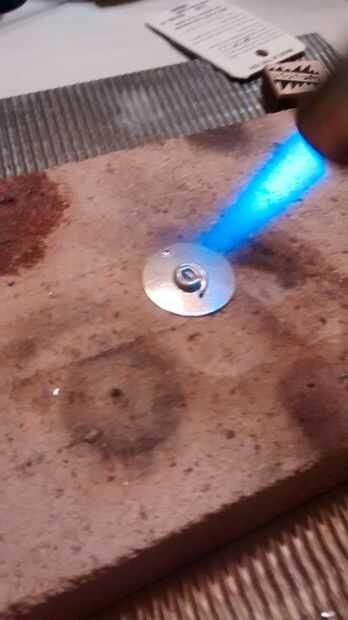 En el pequeño círculo de calor el espacio en blanco todo y luego lentamente empezar a concentrarse en la soldadura. Una vez que derrite será bola encima, si se mantiene la llama en se aplanan regreso en un par de segundos.